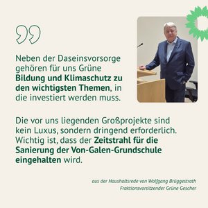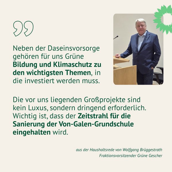 Neben der Daseinsvorsorge gehören für uns Grüne das Thema Bildung und Klimaschutz zu den wichtigsten Themen für die investiert werden muss.